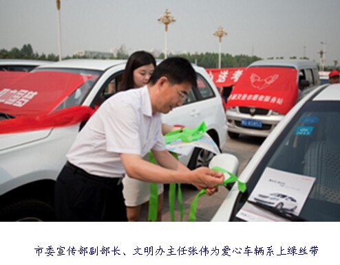 6月5日上午,以“做文明人,為莘莘學子播撒愛心;辦文明事,讓鶴城大地綻放異彩”為主題的鶴壁市2014“愛心送考”志愿服務行動啟動儀式在市文化藝術中心廣場舉行。這是該市連續(xù)第8年組織“愛心送考”活動,愛心駕駛員志愿者將在6月7日、8日為持有準考證的高考學生無償提供送考服務。啟動儀式上,由出租車、公交車和私家車等組成的六百多輛愛心車張貼上了愛心送考標識,系上了象征對學子美好祝愿的綠絲帶。愛心車駕駛員代表宣讀倡議書:“用力所能及的關心和幫助溫暖考生心靈,傳遞愛的火種,做‘愛心送考’使者,構建和諧鶴壁”。最后,市委宣傳部副部長、文明辦主任李懷新宣布“愛心送考”活動正式啟動。愛心車輛徐徐從活動現(xiàn)場開出。