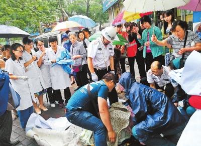 “快!找個(gè)衣服給孩子蓋住。”不知誰(shuí)喊了一聲。由于下雨天冷,光溜溜的小家伙凍得渾身發(fā)紫。話音剛落,沿街門店的商戶楊女士健步如飛,回到店里把自家孩子的毛毯拿過(guò)來(lái),熱心市民有的還把衣服脫掉……毛巾、毛毯、衣服從人縫里送進(jìn)來(lái),一層又一層地裹住嬰兒。當(dāng)120急救車趕到現(xiàn)場(chǎng),眾人把產(chǎn)婦抬上了救護(hù)車,所有人長(zhǎng)長(zhǎng)地出了口氣。